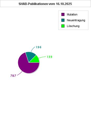 Schweizer Handelsregisterämter - Heute am 16.10.2025 wurden 196 Neugründungen, 787 Mutationen und 139 Löschungen im Schweizer Handelsamtsblatt SHAB publiziert.